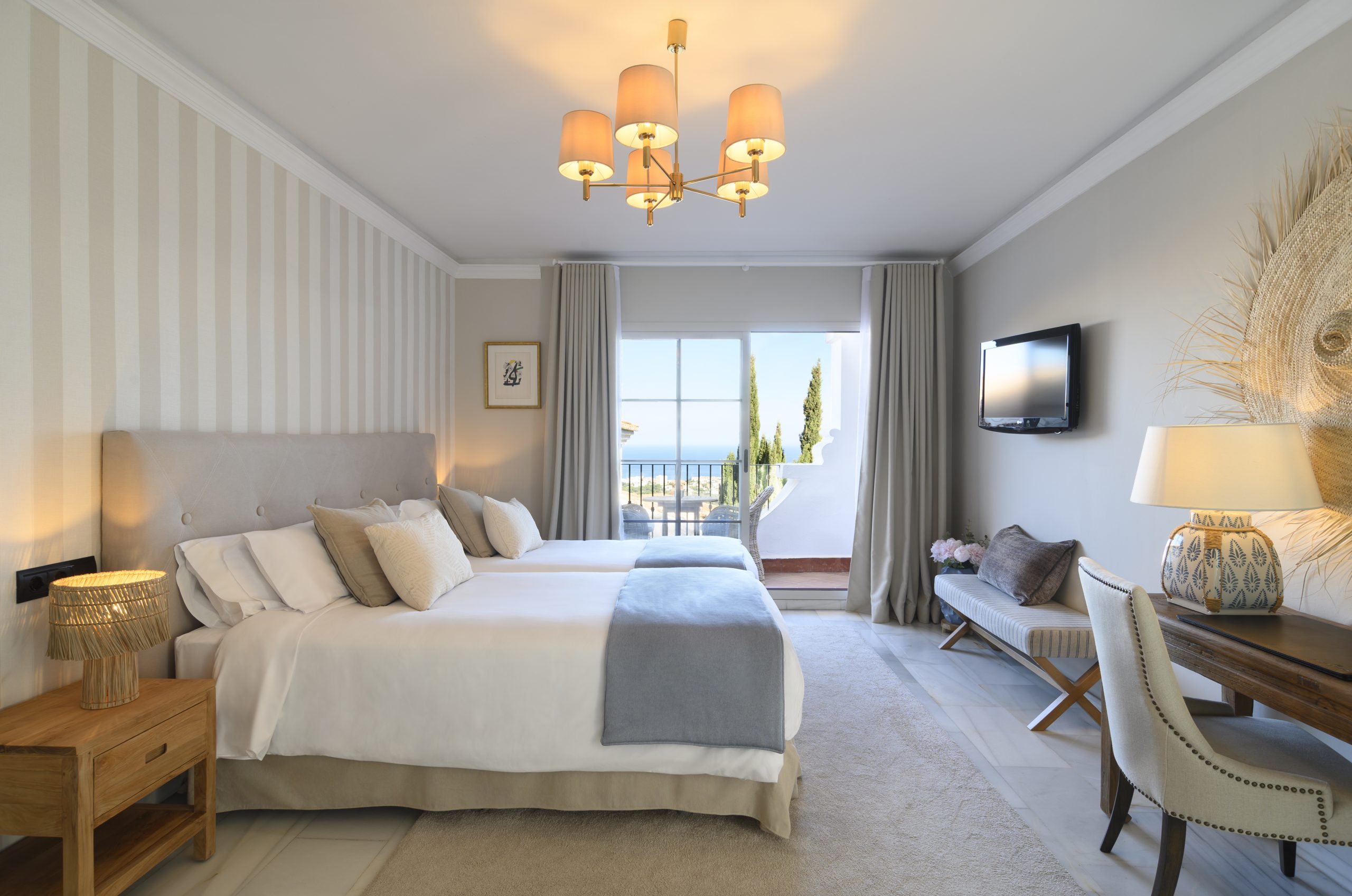 Two fantastic rooms with a view of the Mediterranean Sea. These 2 rooms are located in the Patio building and are tastefully decorated with elegant furniture and warm, cozy colors in the colonial Beach Club culture. All our rooms have been upgraded to the highest quality, where we have tried to bring a little colonial style into this amazing hotel.
